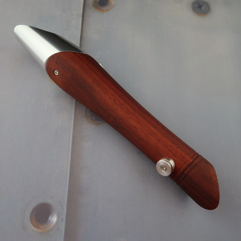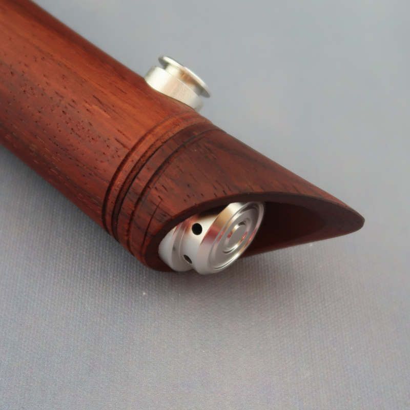 The Brylark is a beautifully crafted product that boasts an elegant wooden body, which is accentuated by metal inlays below the switch. The emitter features beautiful etchings, while the blade holder has windows that add to its overall aesthetic appeal. With the inclusion of two blade holders, this can accommodate a regular 1" outer diameter blade and a skinny blade, users have the flexibility to choose the perfect blade for their needs.